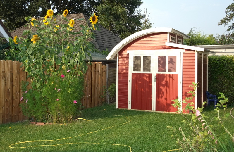 Nun ist das Gartenhaus schon fast fertig, nur das Schleppdach zur rechten Seite fehlt noch: